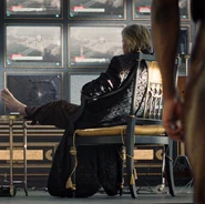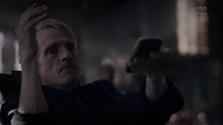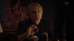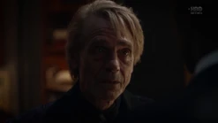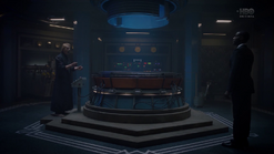 Adrian asks if Cal has a brain, and says that they could insert a ring device into Cal's cortex that would short circuit his abilities so that he could only use them in life-threatening situations. He says that he made it 30 years ago, takes Cal to his study, and says that his attempt to destroy Cal was Plan B. Adrian takes out a case and Cal realizes that he doesn't know what is in it, and Adrian says that he irradiated the case with tachyon particles. He opens the case, revealing the Dr. Manhattan symbol in metal form. Adrian tells him he needs to have Angela put it in Cal's brain and he'll forget who he is. Cal figures that he and Will have matters to discuss, and Adrian tells him to discuss them while he still knows who he is. Adrian laments that his plans for a great future are ignored, and asks Cal if he'll live to see his utopia. Cal tells him that he will, but not on Earth. He created beings designed to care for others rather than themselves, and he did it on Europa. Their unceasing love and devotion is unsatisfying, so he must leave his creations behind. The creations are still there, waiting for someone to worship. Adrian figures that it sounds like paradise, and agrees to let Cal send him there. Cal wishes him godspeed and teleports him to Europa.