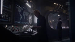 Cal goes to Karnak in Antarctica and finds Adrian watching his bank of TV monitors. He complains that humanity keeps making bombs despite the energy resources he's given them, and Cal tells him that they make them feel safe. Adrian realizes that Cal is Dr. Manhattan since he arrived naked. Once Cal puts on a suit, he tells Adrian that it's been 24 years since they last met. He recounts how Adrian tried to destroy him, and Adrian fabricates another "alien incursion". Adrian insists that he's maintaining world peace and tells him that racial appropriation is inappropriate in 2009. He wonders why Dr. Manhattan is masquerading as an African American male human, and deduces that love is involved. Cal says that her name is Angela, and explains that he told Angela who he really was the moment they met. Adrian figures that Cal wants to be a mortal, and Cal asks him for his help. His host tells him that he has a profound lack of imagination, and Cal laughs at how Angela told him six months ago that he has a fantastic imagination.