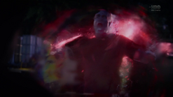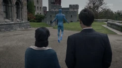 In the present, Angela looks at the ring she took out of Cal's forehead and tells him that they're in fucking trouble. Dr. Manhattan floats into the air for a moment, and Angela tells him that they're in Tulsa and it's the year 2019. She says that bad people are coming to hurt him, and realizes that Dr. Manhattan still has Cal's face. Angela tells him to change back to human for the children's sake, but Dr. Manhattan tells her that he needs to move forward. He remembers the White Night and how he instinctively disintegrated one 7K attacker. Dr. Manhattan teleports away, and the girls upstairs yell "Daddy!" Angela runs up and they show her that Dr. Manhattan is walking on their swimming pool. Topher realizes that he looks like Cal, and Angela says that is because he is.