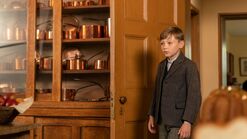 Later, the owners of the Manor find Jon and Hans eating at the dinner table. Hans thanks them for opening their home to them and has Jon introduce himself. The man asks to speak to Jon in private, and the couple take him to the chapel. They say that it's alright that Jon saw them and what he saw was a beautiful thing because they were creating life. They explain to a young Jon that they had a son that would have been Jon's age now, but he fell ill and died. The man says that it's God's will for them to try again, and proceeds to give him a Bible. Jon tells them that his father doesn't believe in them. But the woman says that it's alright, because they are still beautiful stories. One of which is Genesis, which tells the story about how God created the world. The couple asks Jon to make it his purpose to create something beautiful when he goes to America.
