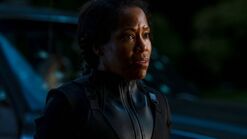 Angela kills the driver of one of the trucks, then drives it into the others. She's wounded and the truck stops, and 7K prepare to shoot her. Dr. Manhattan arrives and kills them, and Angela tells him that they win, and he was wrong. He tells her that he wasn't, and the remaining 7K fire the cannon, teleporting him away.
