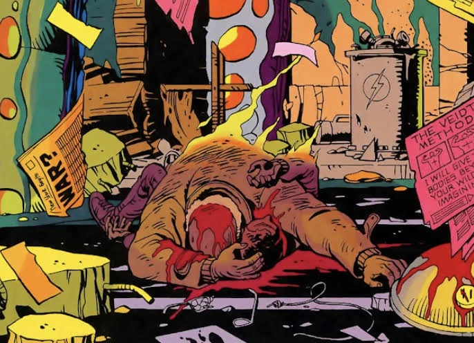 As days pass, Bernie goes back to the stand to read more of the Tales of the Black Freighter comic. Finishing the story, he didn't like it and gave it back to Bernard which angered him a little since he was being nice to Bernie. He said that all the time they saw each other he never actually got his name, and so Bernie told him. Bernard was surprised that both of them have the same name, but Bernie didn't care too much since it's a common name. As they are having a conversation on the night of November 2, 1985, Adrian Veidt's "alien" squid monster teleported from inside the Institute for Extraspatial Studies near by. In their final moments, Bernard attempted to shield Bernie from the teleportation blast, but to no avail.