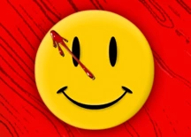 - Chapter II, page 14: When Blake is slashed across the face by the pregnant Vietnamese woman, some of his blood falls on the smiley badge, mimicking the familiar pattern.