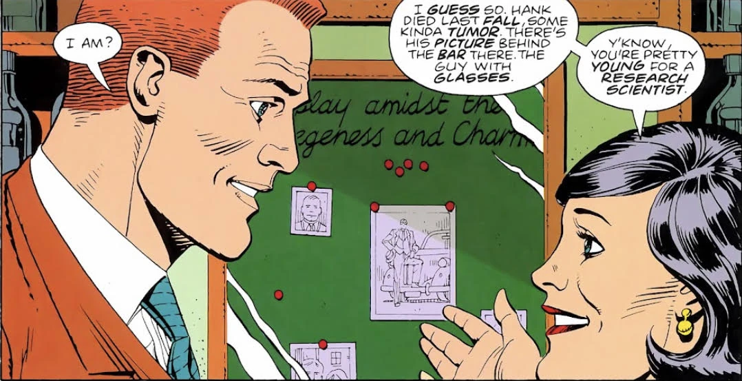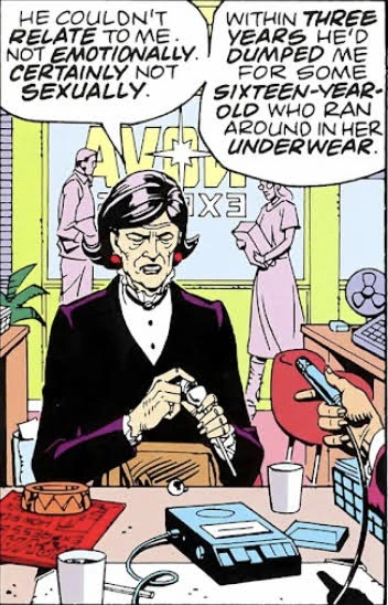 After learning that she has cancer and only six months to live, Janey contacted the magazine Nova Express on October 19th, 1985, and bitterly shares her fraught experiences with Osterman and the general unhappiness present in her life to a journalist at the Nova Express office (most likely Doug Roth). Soon after the interview was conducted, the magazine publishes a damning expose in their latest issue, detailing an alleged link between Doctor Manhattan and several past associates who have seemingly all been stricken with cancer, including Slater, retired supervillain Edgar. W. Jacobi (Moloch the Mystic), and the late Wally Weaver.[4]