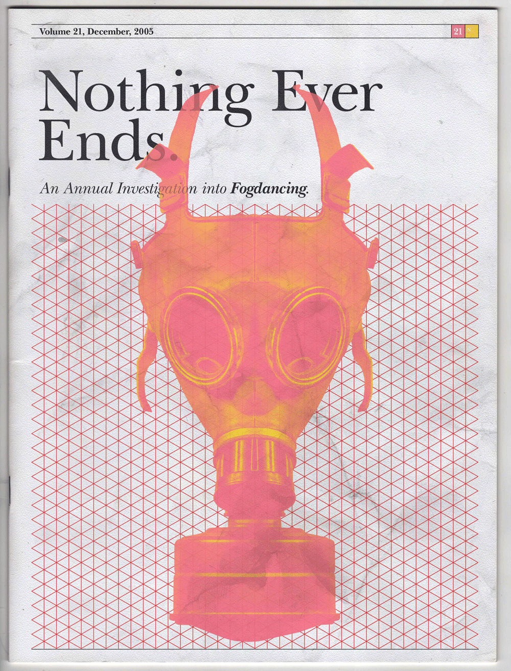 Every year, the periodical had an annual recap contest, in which to create a definitive summary of Fogdancing’s opaque plot. The magazine would choose fifty entries to publish, and the winner of the contest would received a bronze bust of the novel's signature symbol, a gas mask.